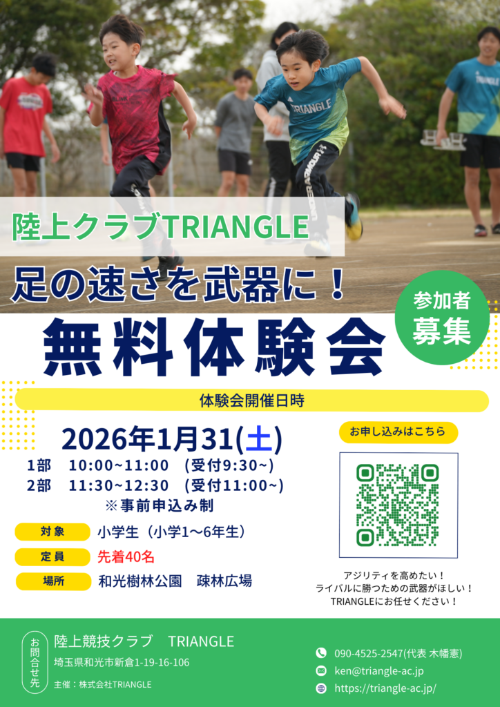 【お問い合わせ】 陸上競技クラブ TRIANGLE Mail: ken@triangle-ac.jp HP: https://triangle-ac.jp/